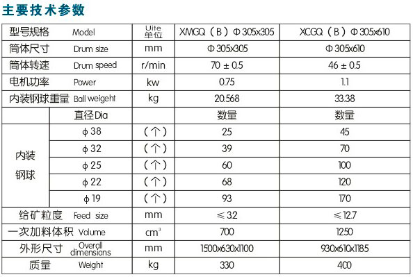 XMGQ功指數(shù)球磨機(jī)主要用于測(cè)定各種礦石、爐渣等物料的磨礦功指數(shù)。本產(chǎn)品由原地礦部唯一指定企業(yè)生產(chǎn),執(zhí)行行業(yè)標(biāo)準(zhǔn)。